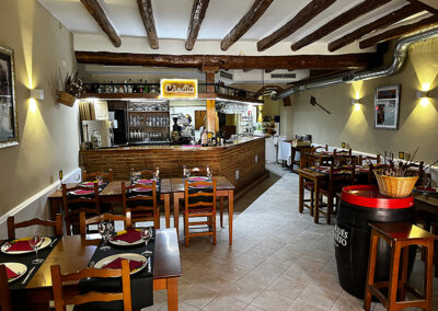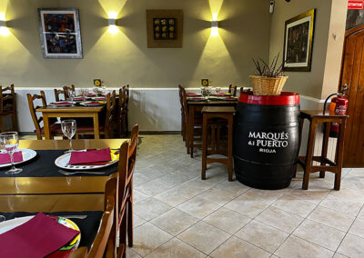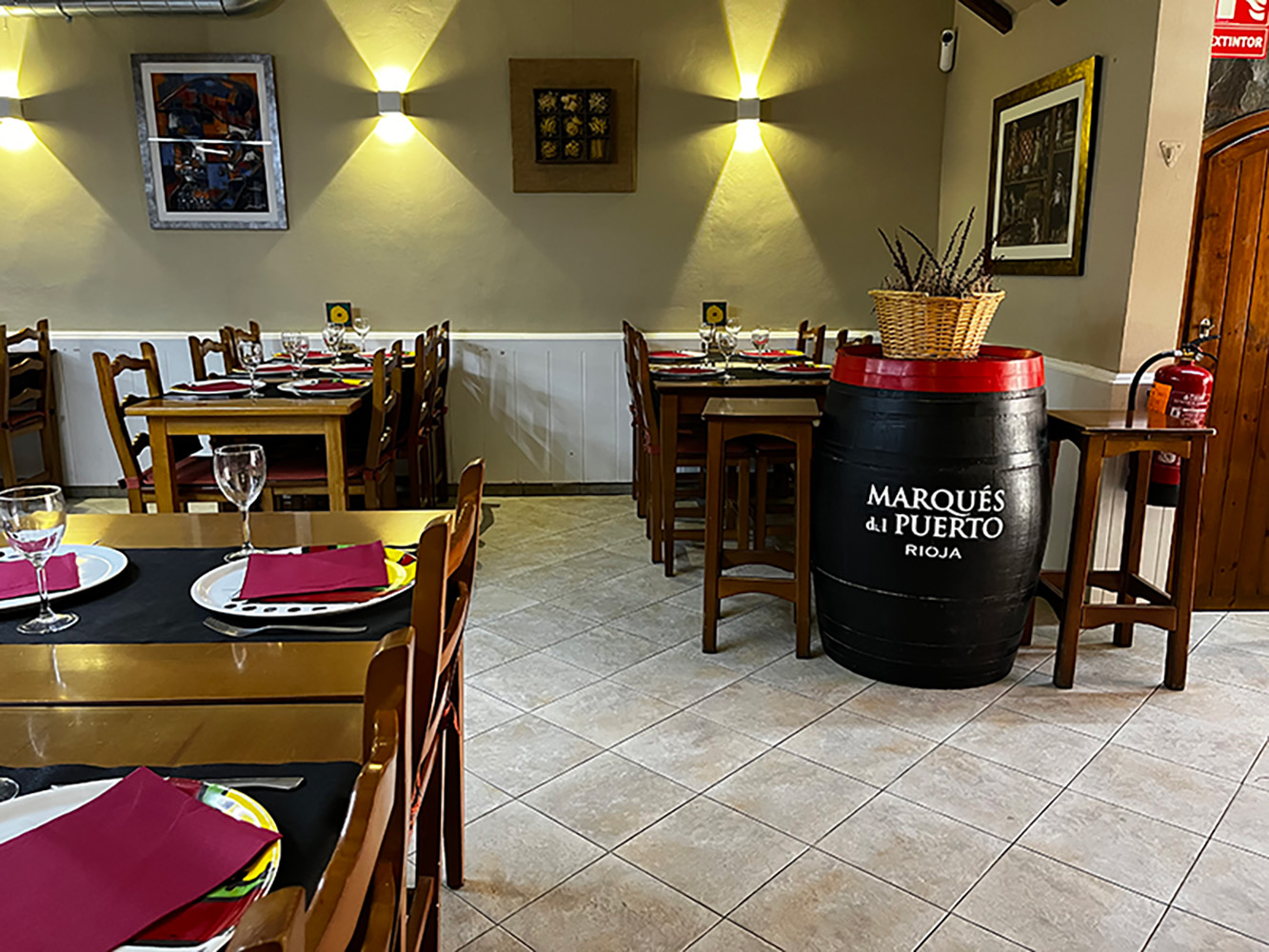 Disponemos de varios ambientes: un comedor interior amplio y acogedor, decorado con elementos rústicos y detalles modernos.